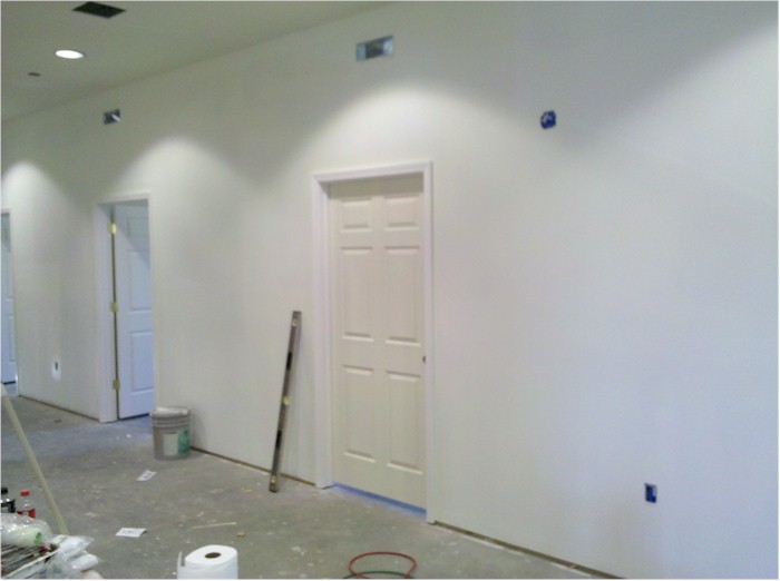Although blogging has been a bit slow lately, progress is still moving along well! We now have the air conditioning units working, lights throughout the building and the gutters installed. We have permanent power and a group of volunteers have hung the doors inside. Painting is continuing over the weekend. It's looking great!! Praise God.